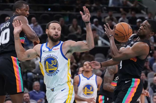 回顾一下比赛。开场穆迪就命中三分,文班亚马补篮,福克斯对抗上篮,巴特勒立刻回应三分。中段巴恩斯下起三分雨,库里连续单打命中,文班亚马送上经典的站扣,都不用发力起跳。但后半段风云突变,勇士进攻哑火,卡斯尔连续强攻点名库里,节末福克斯跳投+尚帕尼轰三分,第一节马刺28-14勇士。进入第二节,文班亚马在格林头上跳投,随后再中三分球,马刺最多领先16分。波杰姆斯基三分球+巴特勒中距离止血,文班亚马弹无虚发,穆迪续上三分球。两队陷入拉锯战,后半段卡斯尔继续点名库里,再度拉大分差。
